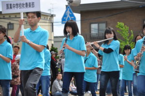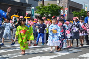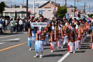 厚真町のメインイベント田舎祭りの前夜祭、田舎まつり音頭パレードの様子です。
