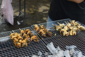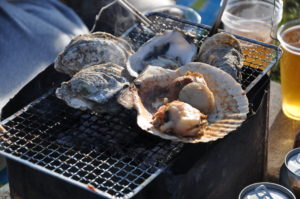 花より団子ですが、ジンギスカンや魚介類のバーベキューが会場狭しと繰り広げられます。