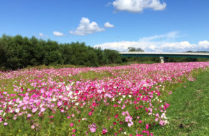 背後の山には、災害復旧中ですが胆振東部地震の爪痕が残ります。