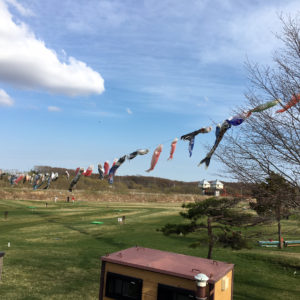 厚真町では、こぶしも梅も桜も同じ時期に咲きます。多少の前後はありますが鯉のぼりも大空を目指します。