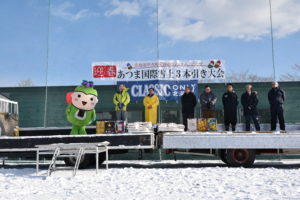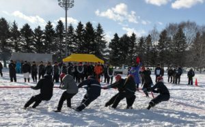 厚真町発祥の国際雪上三本引き大会の様子です。今や北海道大運動会のメイン競技にまで育ちました。