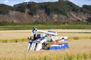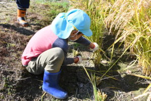 収穫の秋を迎えて、自然の恵みに感謝の気持ちをささげながら、怪我がないよう慎重に刈り取り作業を行います。