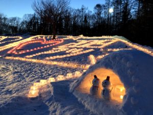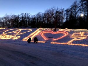 5000人の願掛けに相当する5000個のランタンを囲んで、真冬の夜にバーベキューです。